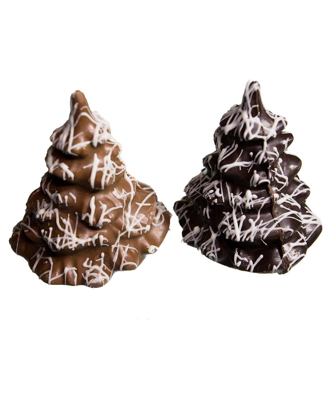 CHOCOLATE TREES DECORATED WITH WHITE CHOCOLATE