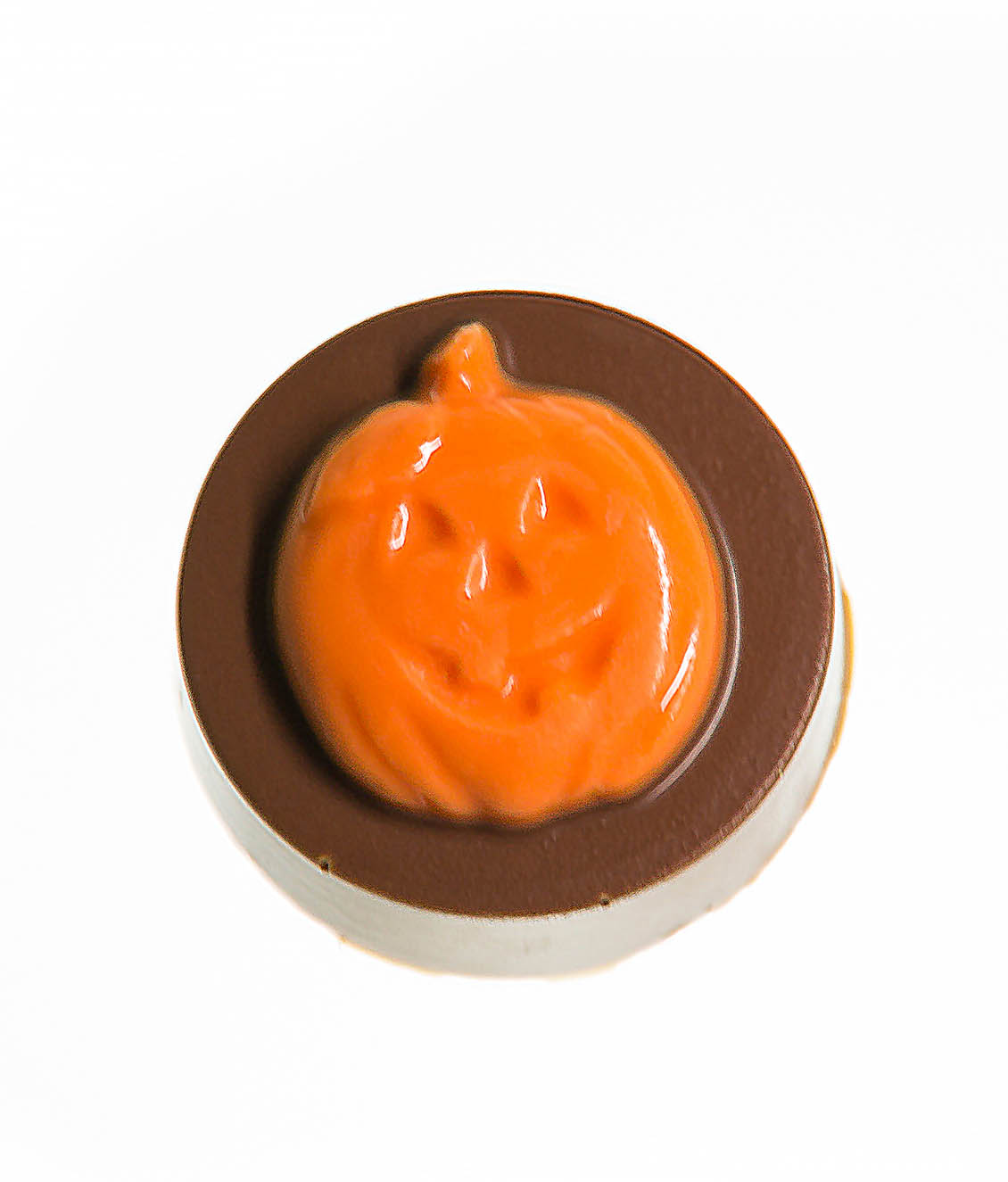 Oreo cookie with pumpkin decoration. Available in dark & milk chocolate