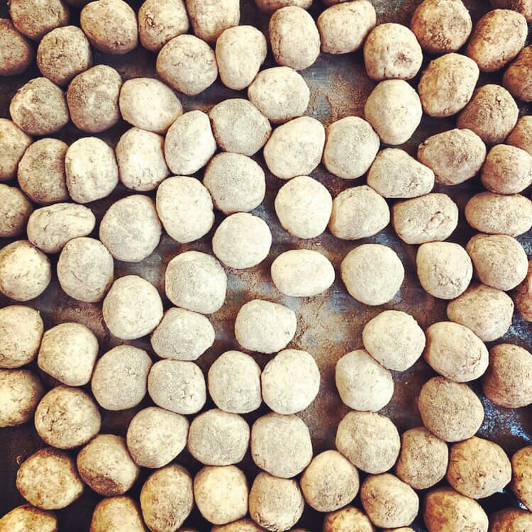 Coconut Cream rolled in a cinnamon and sugar mixture.
