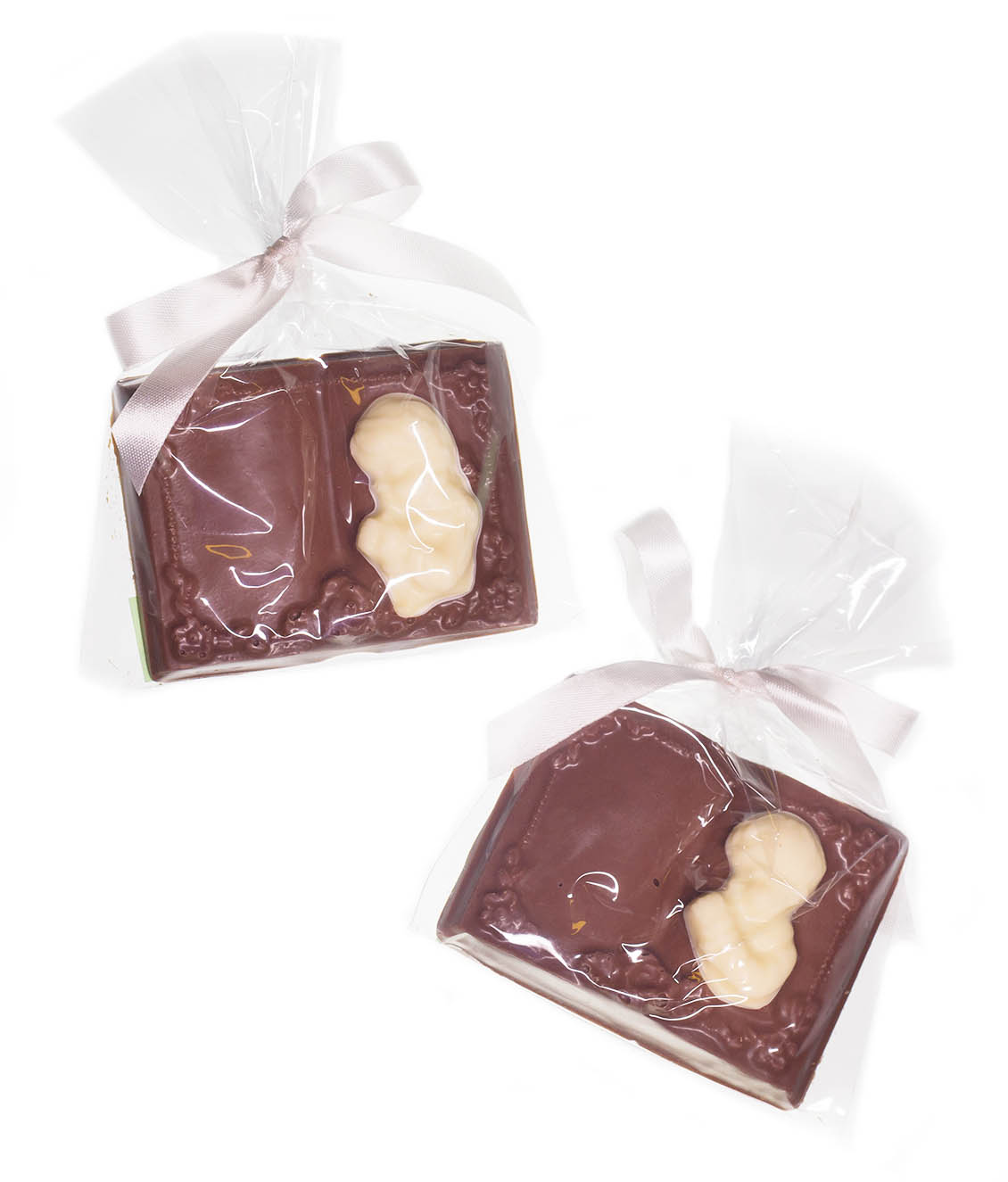 Available in milk, dark or white chocolate with contrasting chocolate details.